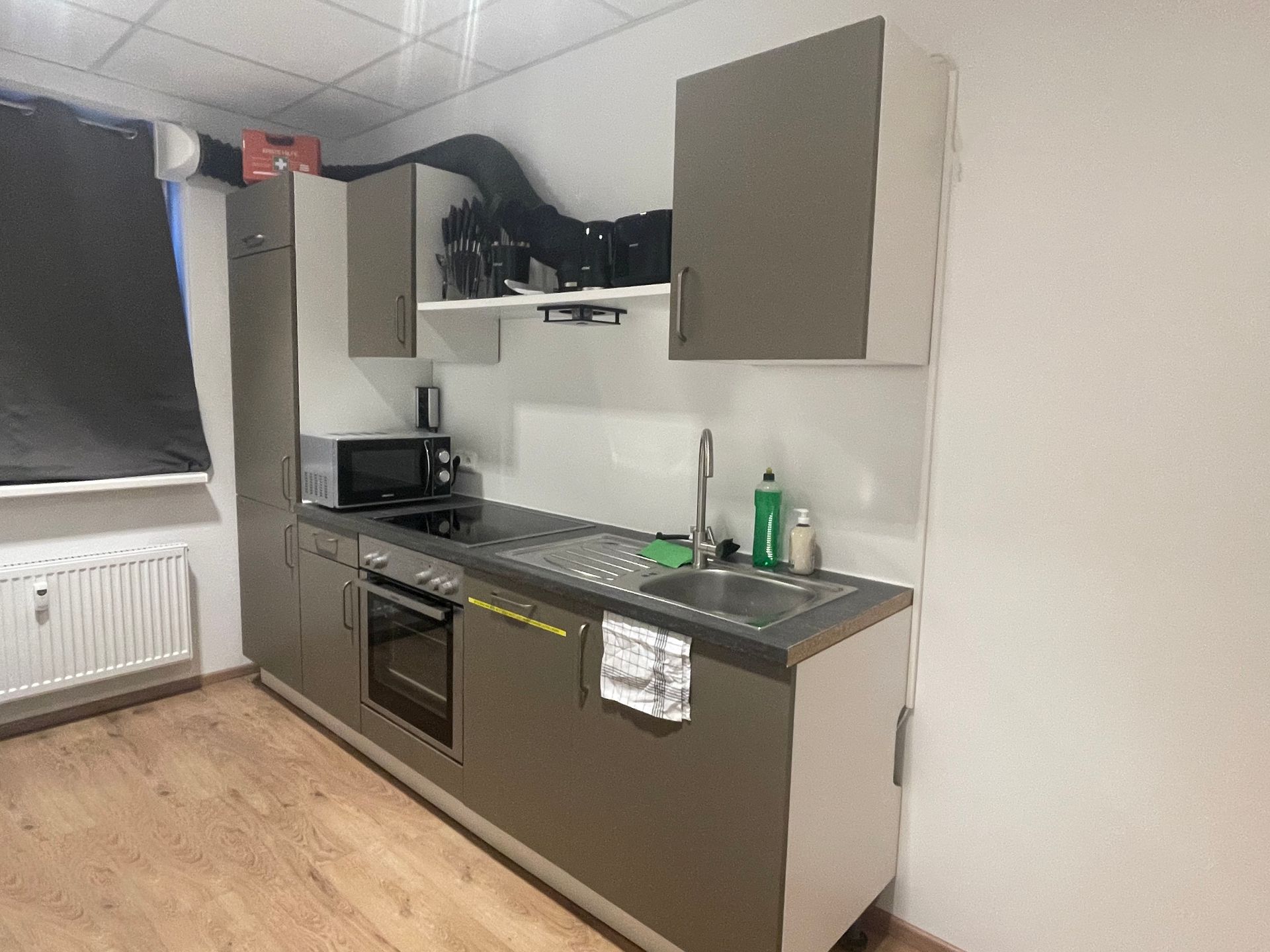 In den großzügig gestalteten Gemeinschaftsflächen steht Ihnen eine voll ausgestattete Küche zur Verfügung. Der einladende Wohn- und Essbereich ist ideal, um nach einem langen Arbeitstag zu entspannen oder neue Kontakte zu knüpfen.